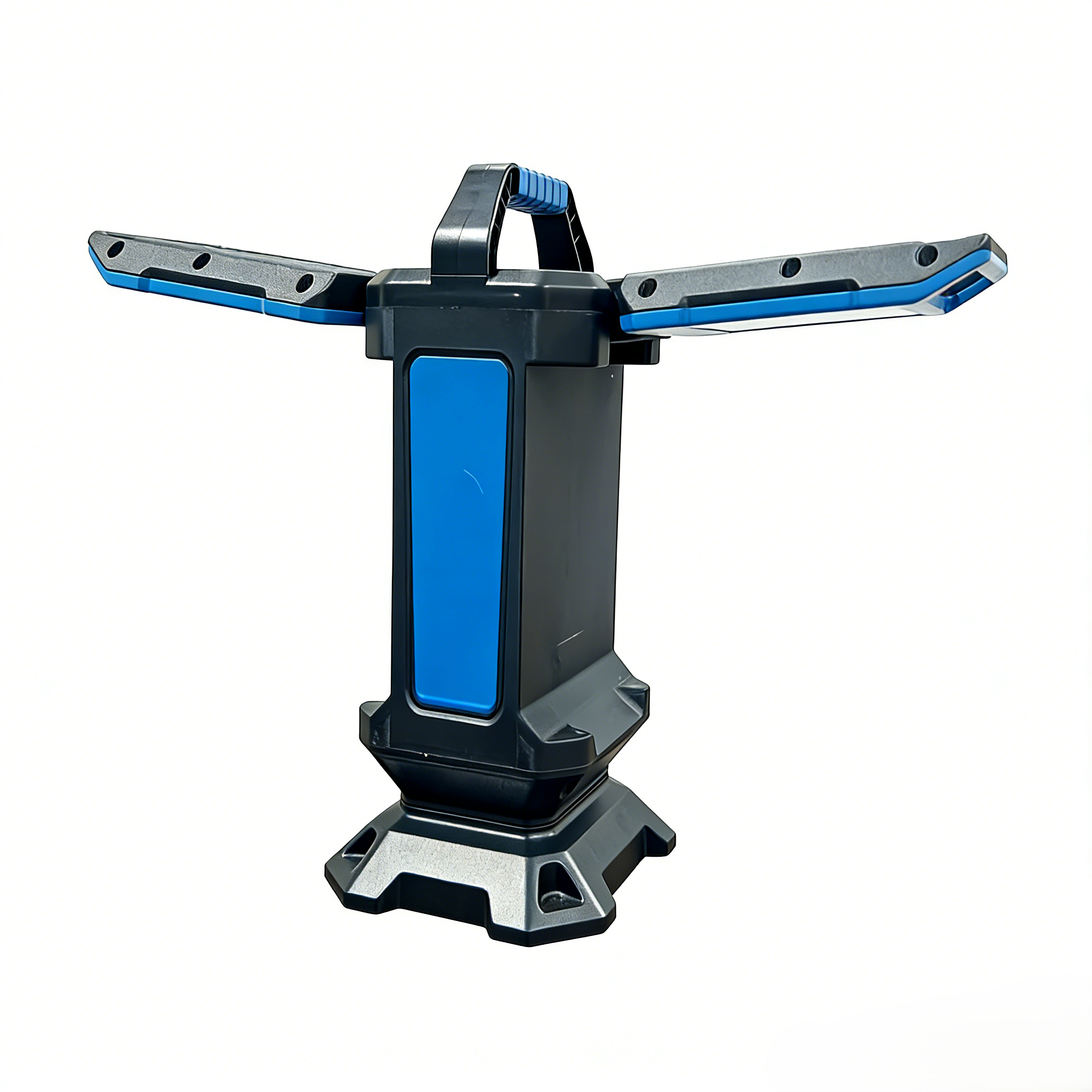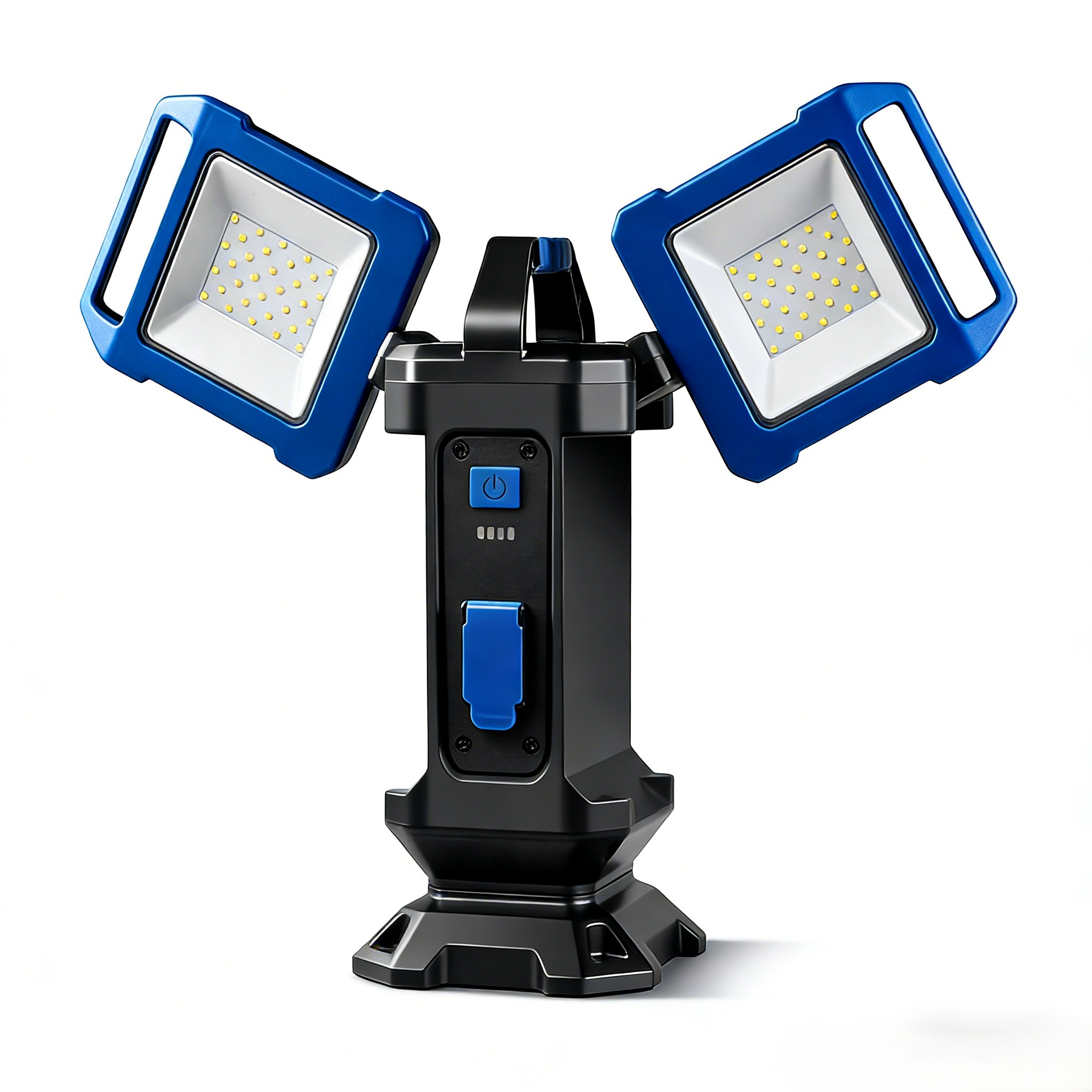 Dual Head Rotatable Portable Worklight Wattage: 70W Lumen: 7000lm Housing: Aluminium+plastic Reflector: Blister Light source: SMD Correlated Colour Temperature (CCT): 6500K Colour Rendering Index (CRI): >80 Operating Ambient Temperature (Ta): -10℃ to +40℃ Beam Angle: >110° Protection Degree: IP54 Switch: 50%-100%-OFF Battery capacity: Lithium battery 18650 3.7V 6600mAh*2 Continuous discharge time: 3H Charging time:8H incl 1m USB-Type C cable With extand height 220cm