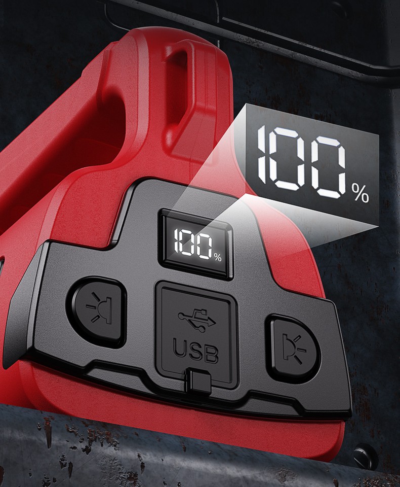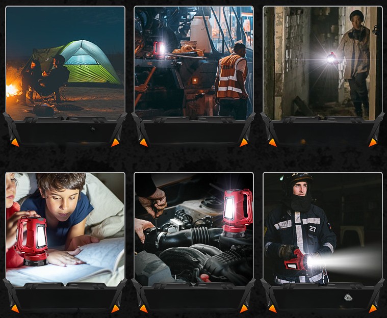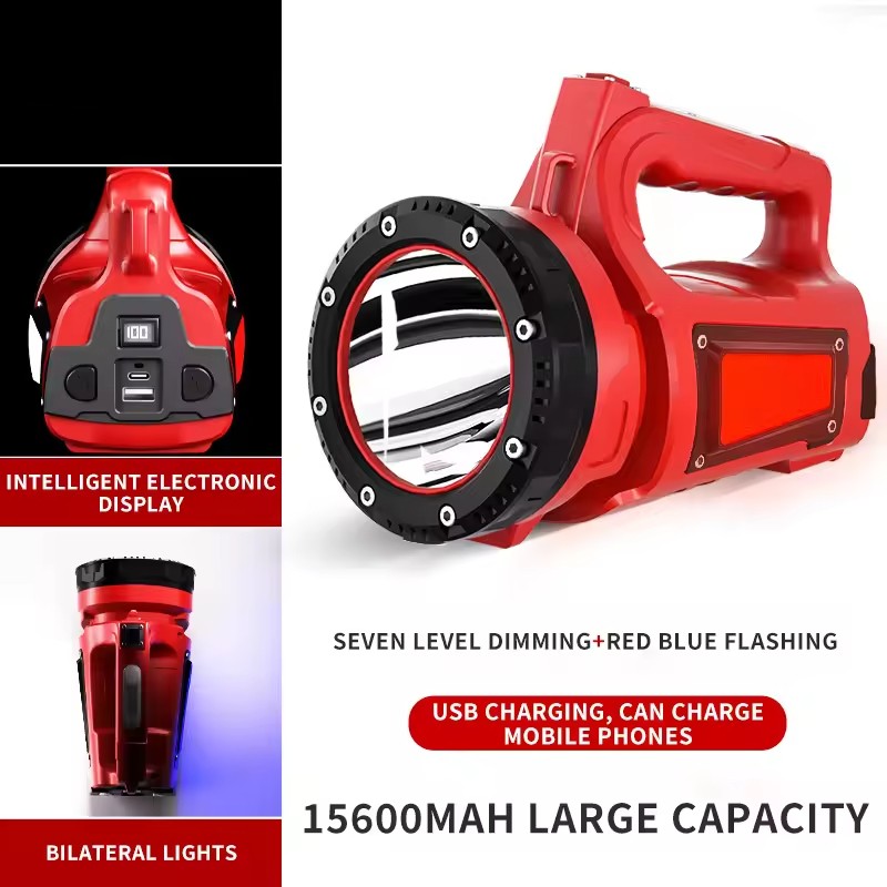 Functions: 3 brightness levels + side light + red light + red-blue warning light + USB output; 3 switches design; power bank function; mosquito repellent function; smart power display